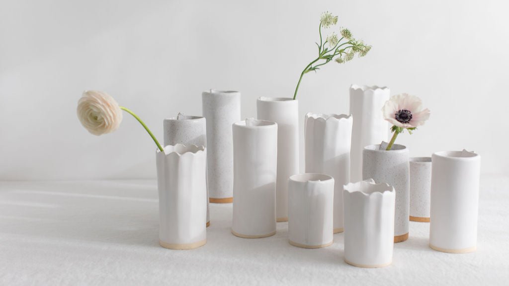 White Matte Pillar Flower Vases