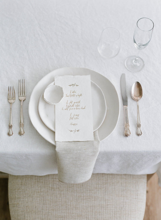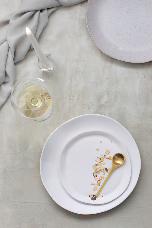 Our White Matte Collection is finely crafted from white stoneware clay and dipped into our signature White Matte glaze. White Matte glaze is a semi-matte that absorbs light like a true matte but has a silky, smooth surface to let your flatware glide gently across it.