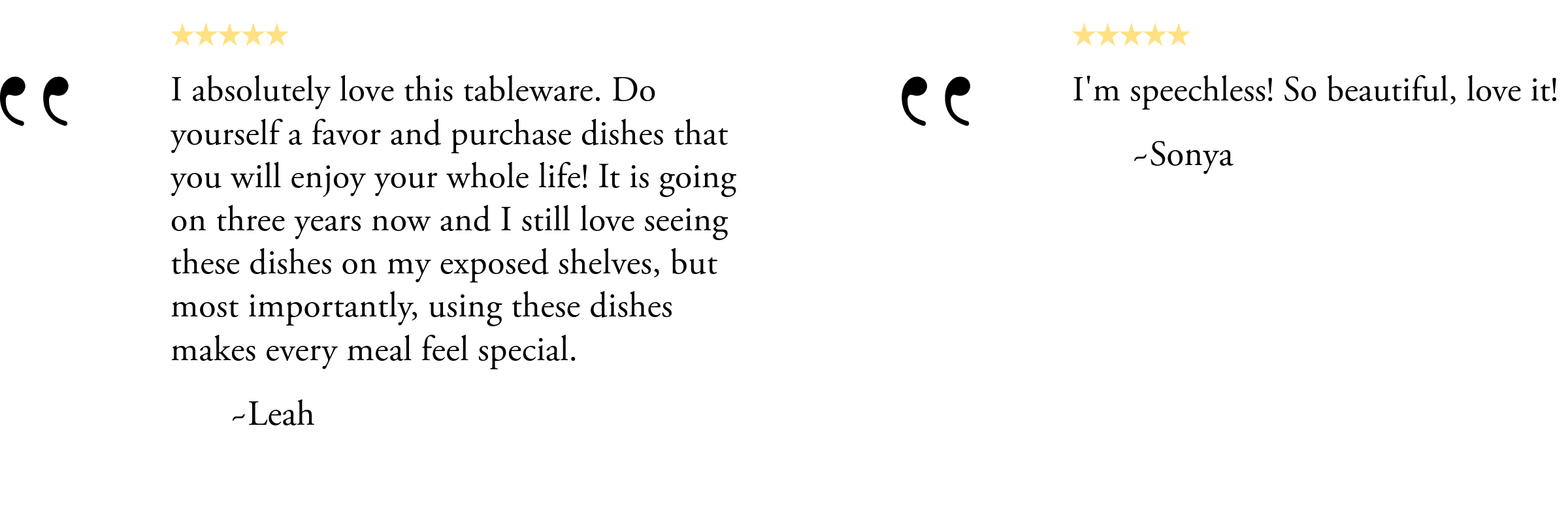 The temperature of handmade, natural clay items may vary after microwave use. We recommend allowing items to cool before taking them out of the microwave or using an oven mitt. Pieces with metallic glaze details are real gold or silver, which should not be microwaved. Our dinnerware is microwave safe and oven safe up to 400°F with some stipulations. Always be careful to avoid temperature-shocking ceramics from extreme hot to cold. A good rule of thumb is to heat things slowly, evenly, and carefully! We recommend caution with oven use. Place the ceramic piece in a cool oven and bring up to temperature with the oven, no higher than 400°F. Never place a ceramic piece directly into a hot, preheated oven to avoid risk of temperature shocking.